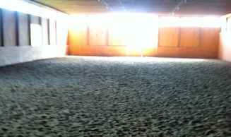 Our riding facilities include a 100' x 60' indoor arena that uses a combination of natural and incandescent lighting. It also features a seating area for friends and family to sit comfortably while you ride either in the arena or a heated viewing area outside of the arena.